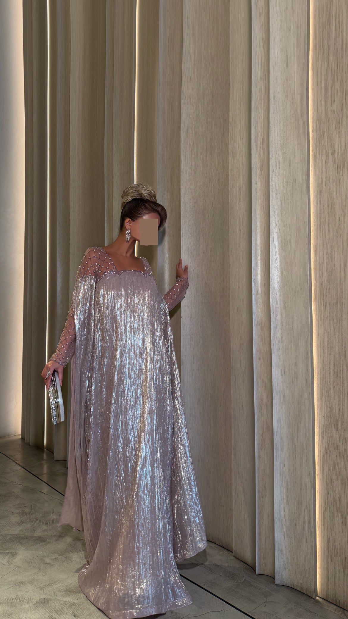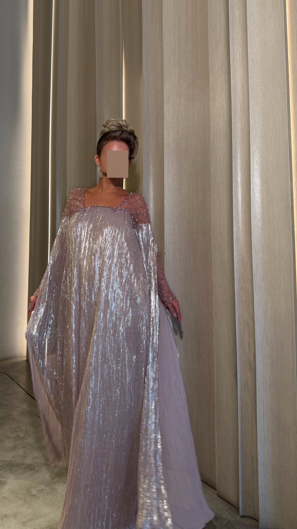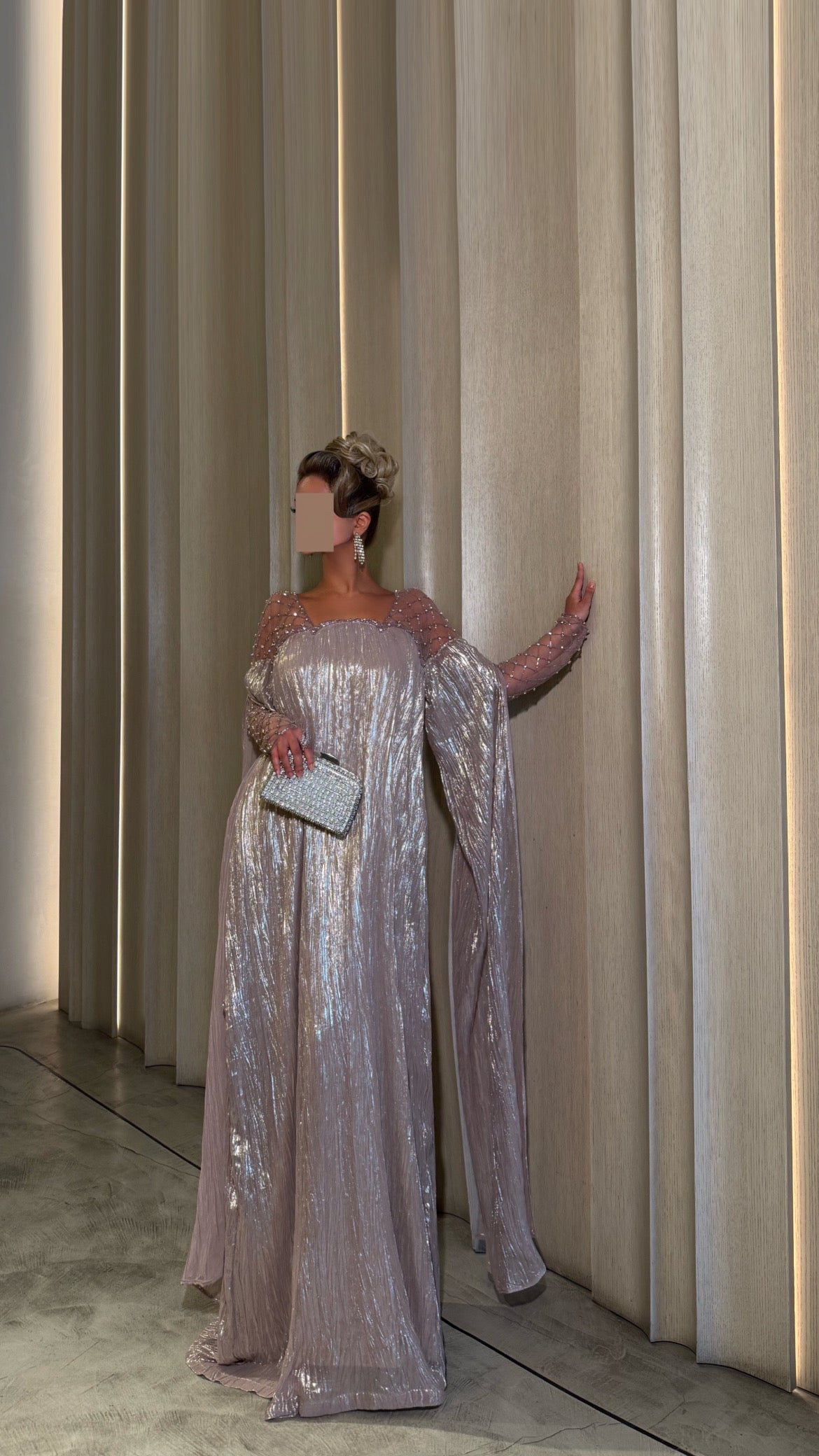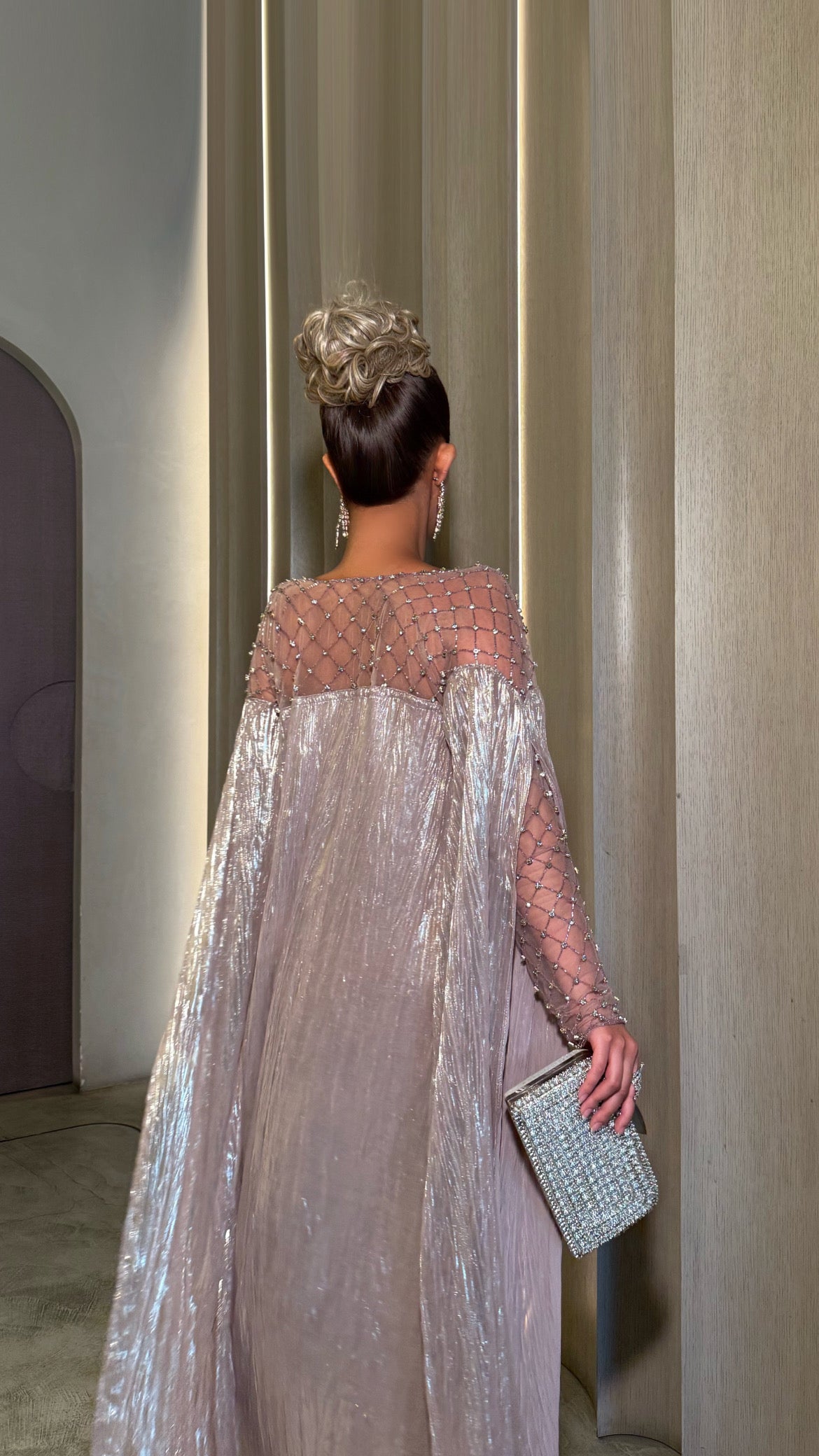 يجمع بين الأنوثة والرقيّ والفخامة الهادئة، يناسب حفلات الخطوبة، الأعراس، أو المناسبات الرسمية التي تتطلّب إطلالة راقية ومميزة.